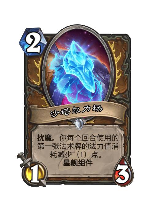 扰魔。你每个回合使用的第一张法术牌的法力值消耗减少(1)点。星舰组件。