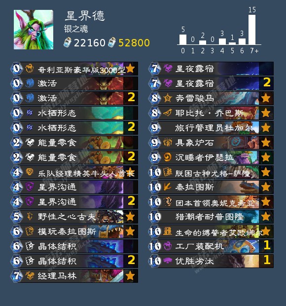 更新一下版本(攻略看前面的帖子) 刚上个传 牛 无语证人 偷刀 塞鸽子 奇利亚斯 完美 复制 体感大优猪猪牧和任务术 还是劣快攻和蛋猎(快攻多可换40)塞鸽子辟邪蛋猎(中途还不小心打死一个蛋猎)这里是29张卡 剩下一张看你想带啥 我带了宝珠(指引之类的都可以)牛牛也可以根据自己想法改 注意伊瑟拉能回自己 具象炉石还没修复需要手牌小于等于5张 马林大部分情况选王冠 欢迎交流