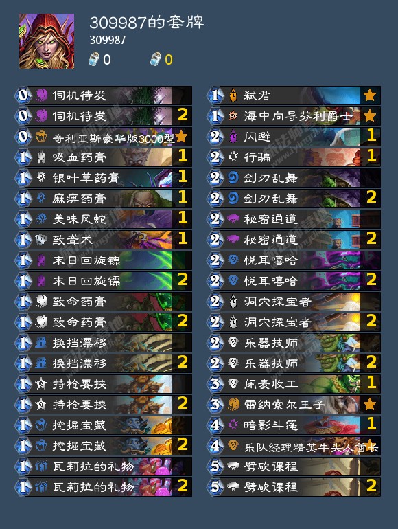 持枪要挟,满编。很万金油的卡,主要是找直伤和解场,很多局是靠它赢得。打快攻各种回血也救老命。一般在5费以后打。