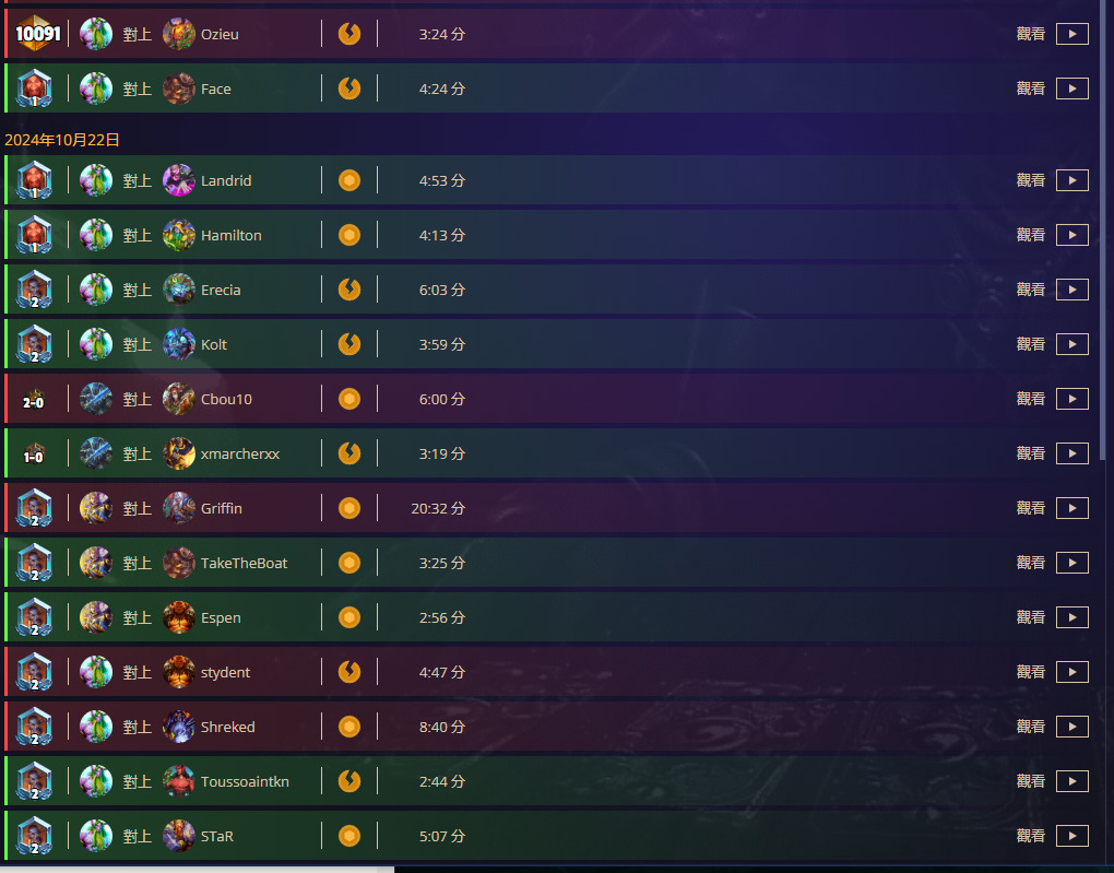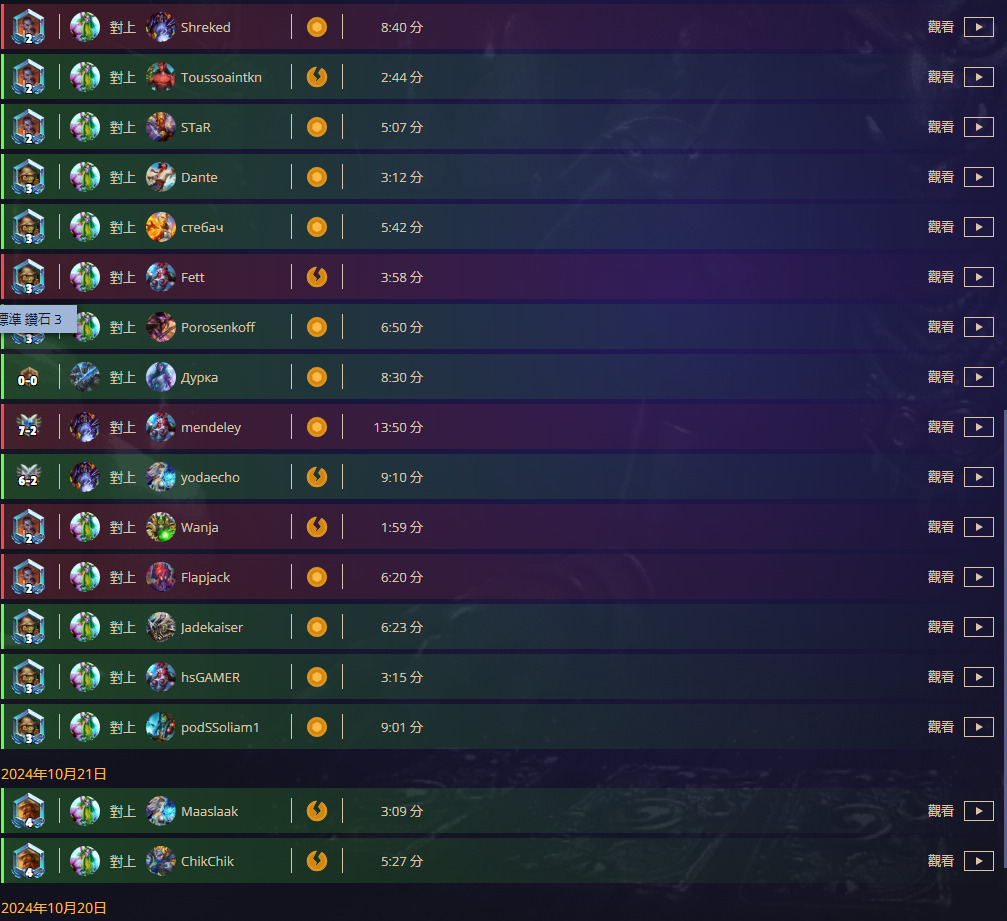 基本优开环境所有快攻(术除外)、及理论中期没有大解的职业、各种形态的dk、德、萨满、圣骑(不是胡到4费泰坦或拖到出泰坦就行)、不糊的瞎子、贼、猎人(推荐捏一张buff再开鼓圈防霸王龙,看你判断)。水人法55开(不客观,遇到的少,比他快启动能赢),战士55开(理论是大劣势,但有信息差,我遇到好几个没留解牌,被我6费踢死),天敌术士,只赢过一把(打不过的快跑)。