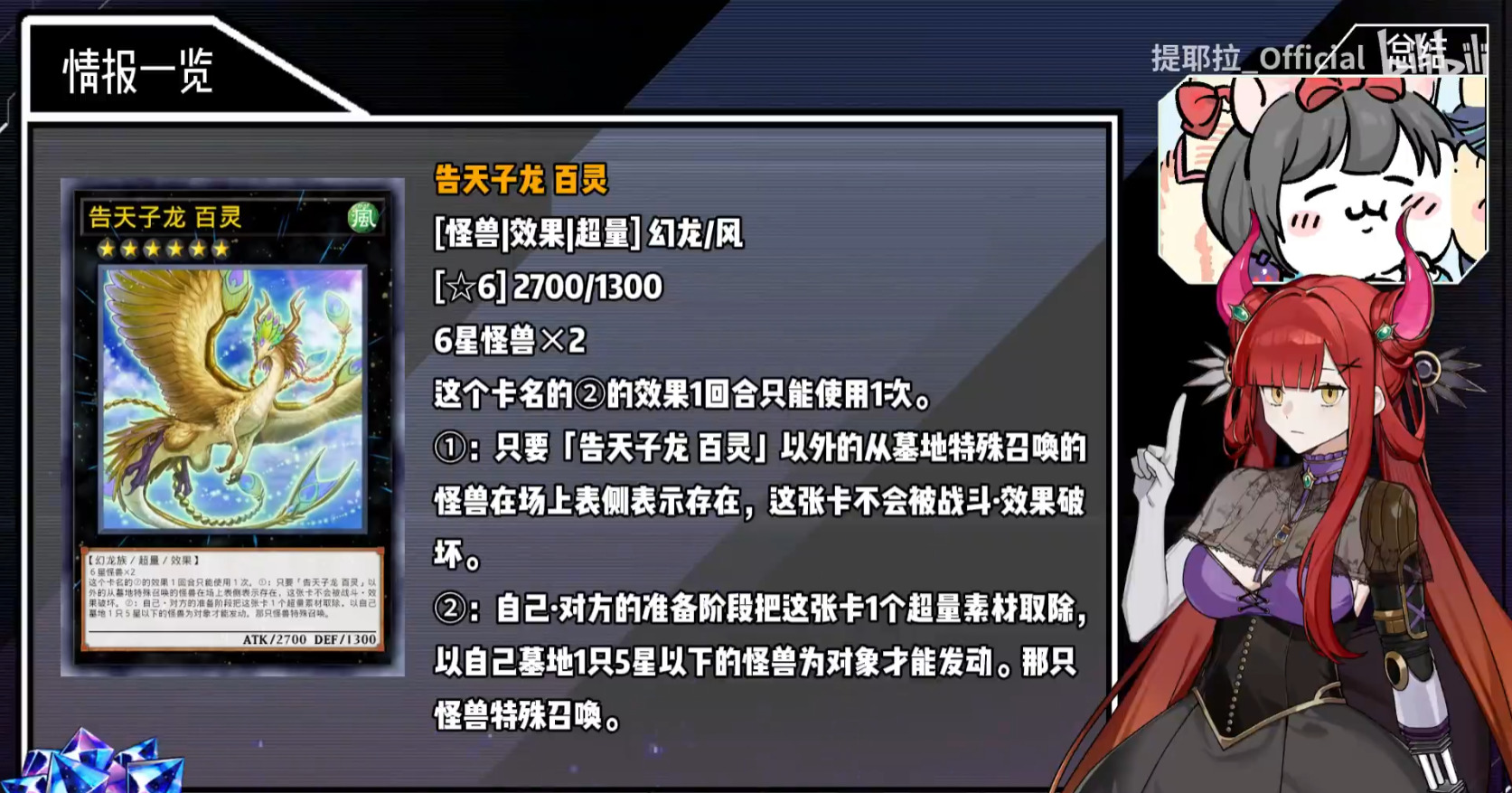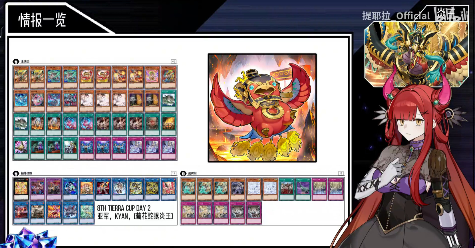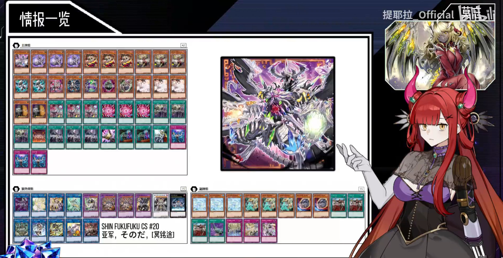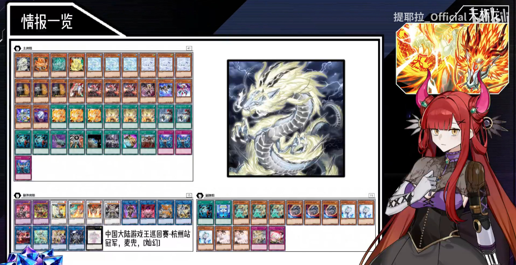 天杯龙大伙都熟悉,这段时间构筑上也没有创新,刻魔天杯龙在ocg环境中失去了淑女难以支撑,毕竟四条龙只下一张是基于淑女转咎姬才得以成立的理论。ocg环境目前的大部分天杯依旧走着纯情后攻龙呼三拳路线,灵主王主卡携带率对半开,红色重启入主挑战码丽丝们的后场红坑,挂上死狱龙弥补调整不足的问题,剩下的全部交给右手与勇气。