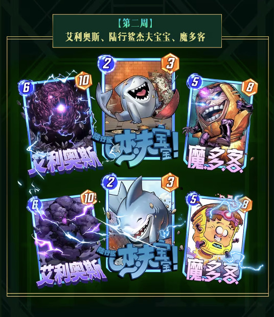 第一周的焦点宝箱没有新卡牌,分别是吞星,灭霸和雪守卫,如果你已经有了这张卡牌,焦点钥匙如果随机到这张牌,就会获得他的变体卡牌。