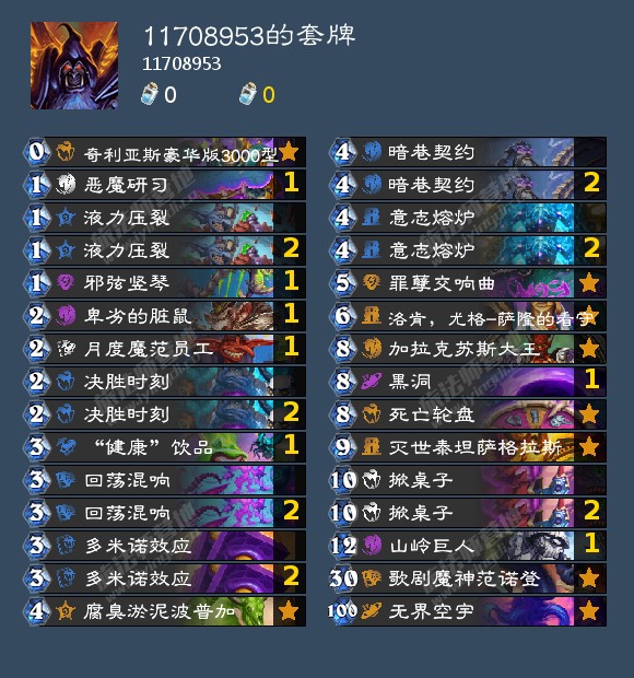 不得不说没有大法术法的环境实在是我们术士的天下,先上连胜记录,通过跟各职业的对战我们不难发现,这套带满液力压裂的术士只有奥丁战可以跟我们五五开。新的中立卡牌无界空宇加入让我们洛肯更容易拉到大身材给月魔吸血。面对德鲁伊,战士,死骑,我们可以直接五费开交响曲撕牌,当然得看羁绊选中了。这套主要就是抓快攻和抓快攻的死骑,大法术法已经很少,十一把就遇到一把。奇利亚斯是吸血扰魔。