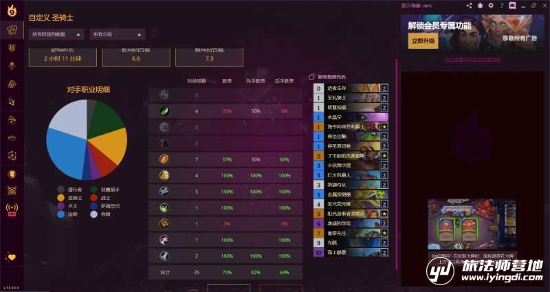 2.我们在占住场面之后给脸贴一个圣盾即可稳吃元气骑的分,可以看到我对线圣骑士的胜率高达100%!!!