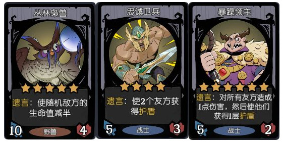 4.功能辅助型遗言,可搭配随从野兽族“丛林枭兽”、战士族的“忠诚卫兵”“暴躁领主”。