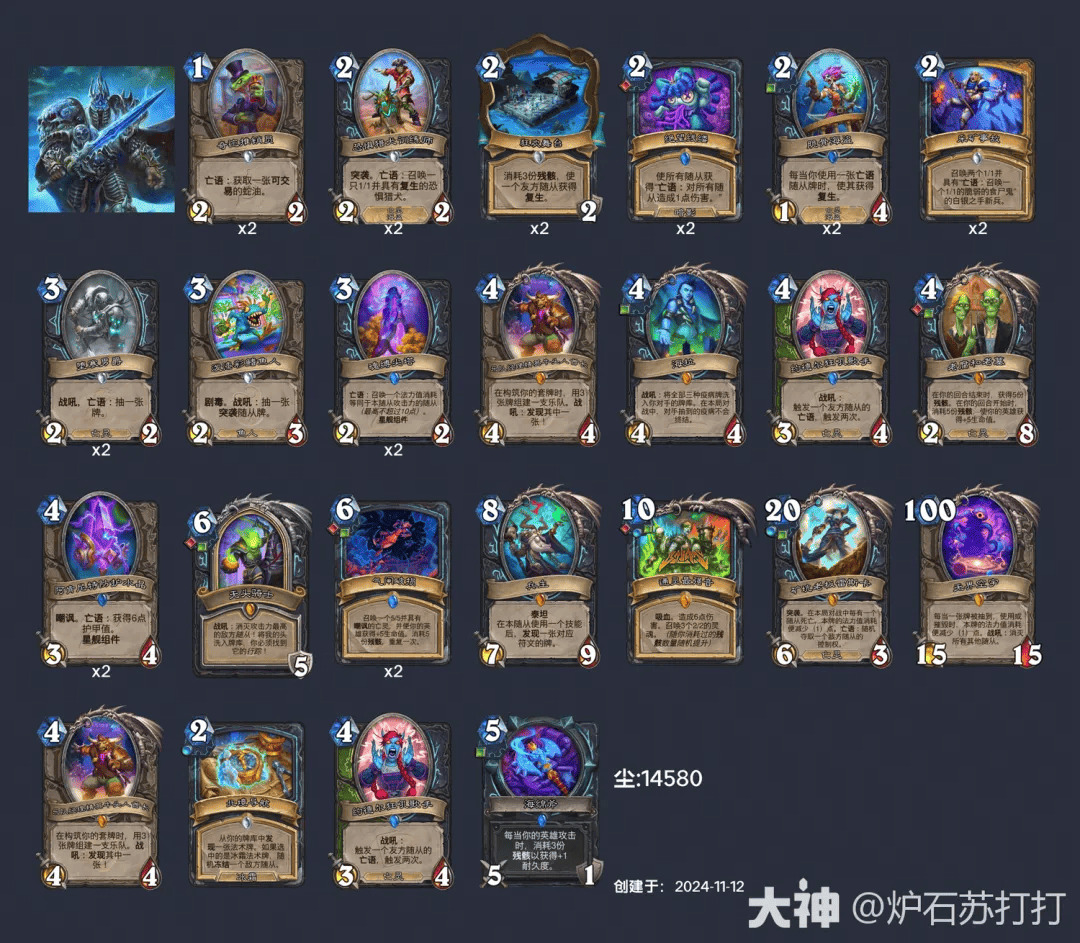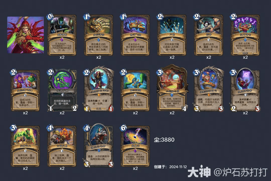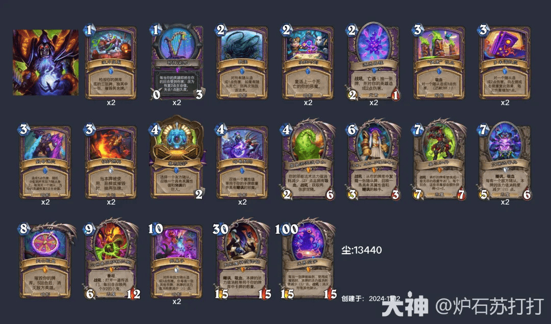 对战思路:前期3回合费用打满,规划好怎么出不会被轻松解(比如打dk就一般别裸下112),互相buff混一混,快攻和中速对面只要断一下节奏或者我们借助男神和蛋糕、buff配合抢到场面,对面就抢不回来了。打慢速防防aoe,130可以试探下,没有就铺,保持场攻有一定威胁,才能找机会开门斩杀。