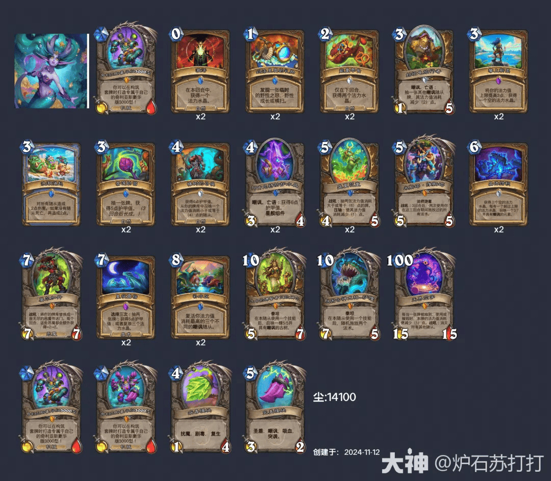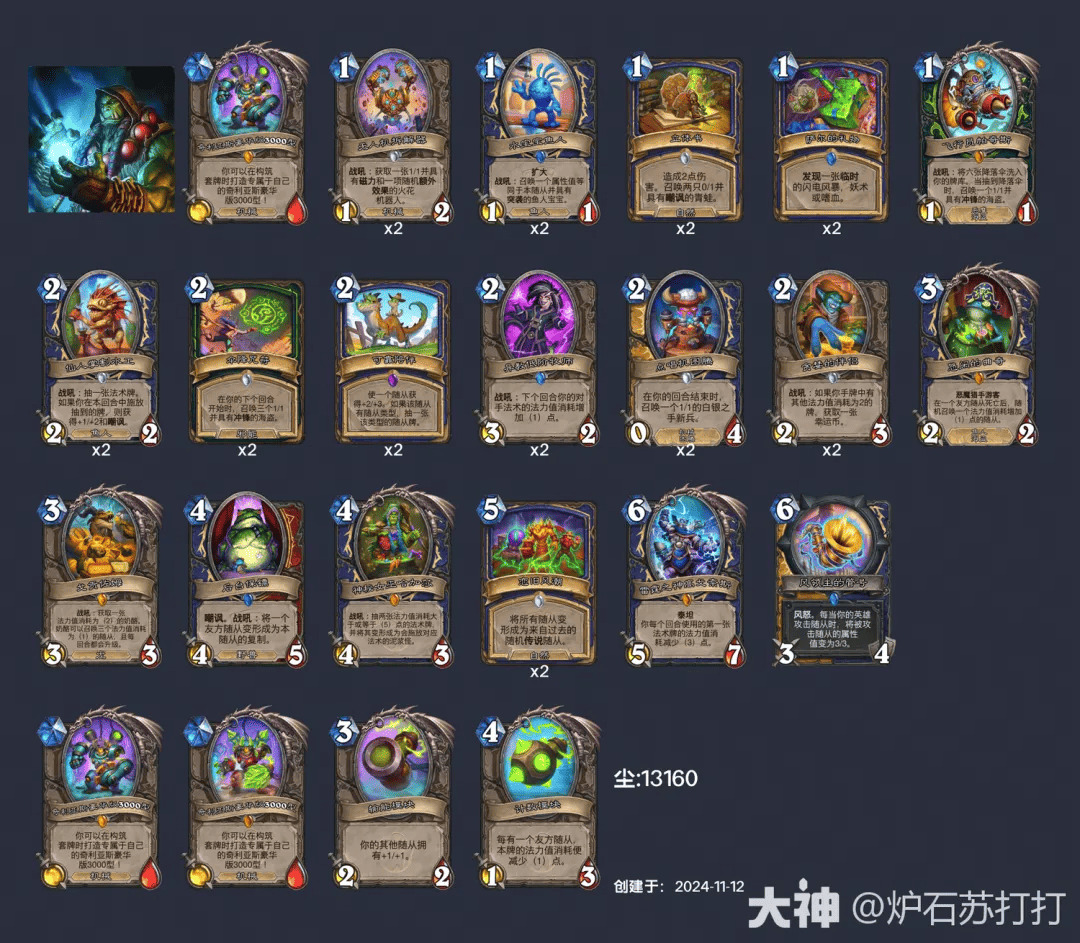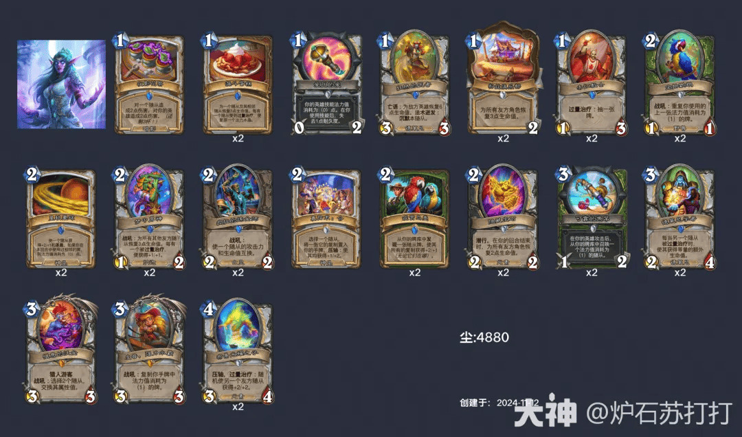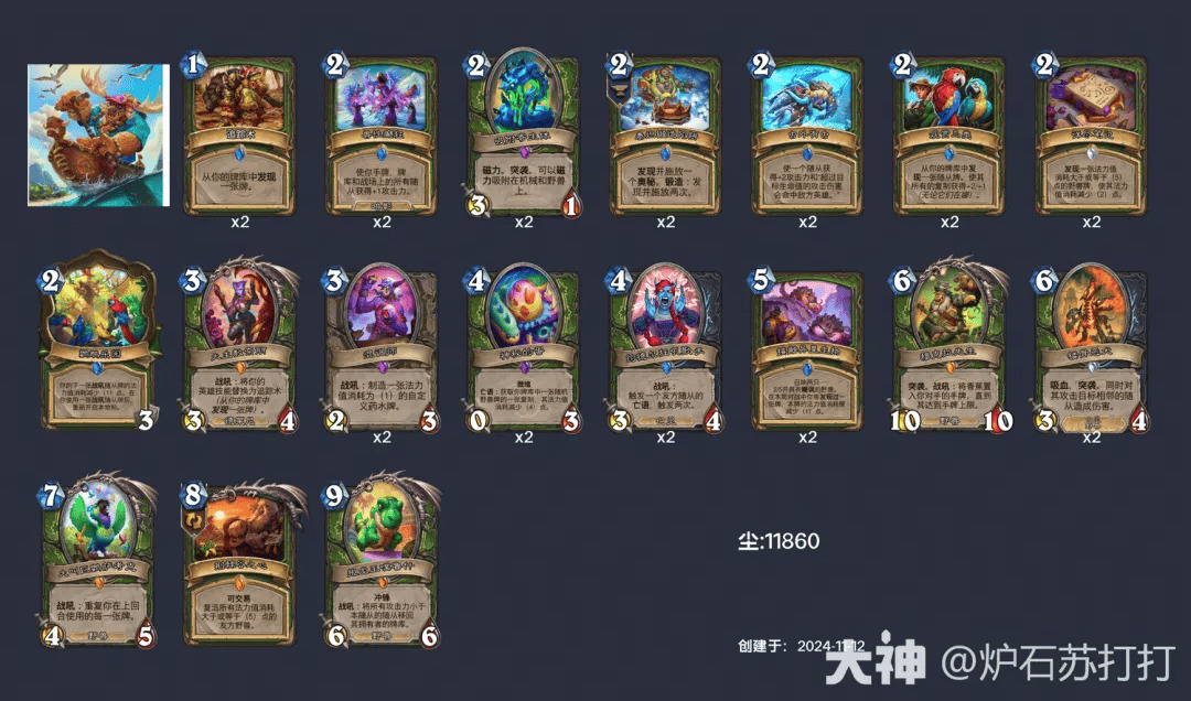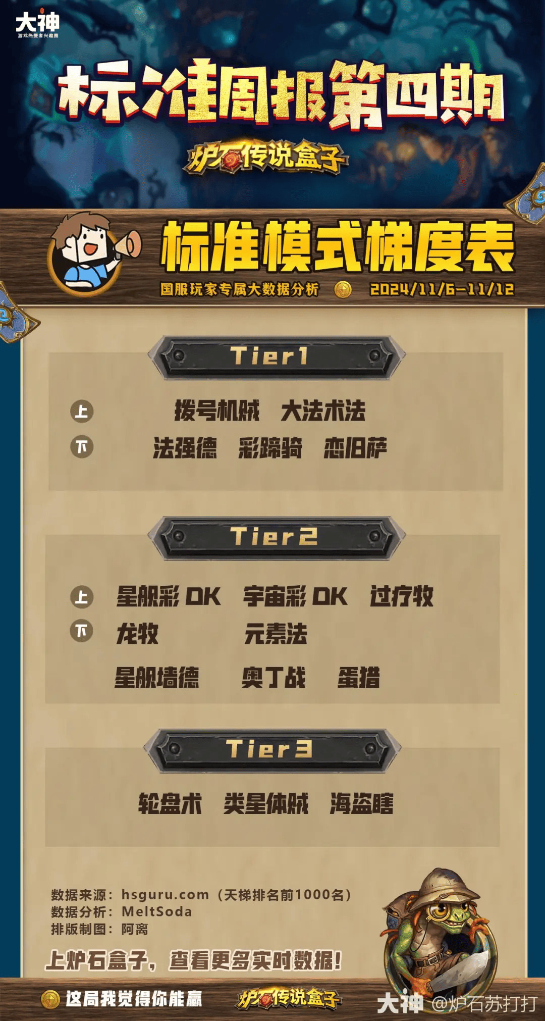 德鲁伊在高分段的普遍形态是法强德,凭借【虚灵神谕者】的加强,在抗快攻、过牌、后期输出等多维度都得到了提升;中低分段存在更多的星舰墙德,这算是被驴鸽带火的卡组,依靠中后期的场面爆发可以平推对手,简单粗暴,但是前期薄弱+容易被OTK操作的缺点仍然明显,因此在本期周报中法强德排到了T1下位,墙德则是T2下位。