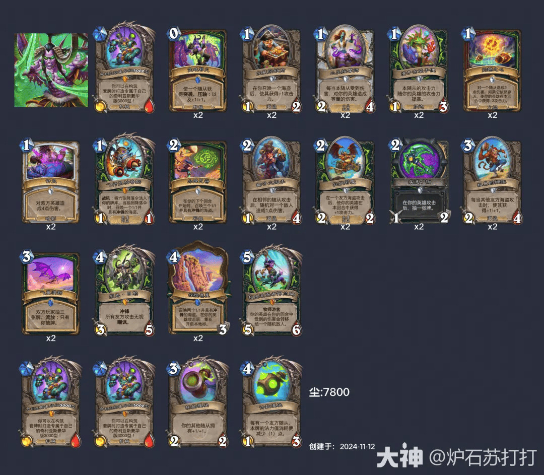 DH的乘务员体系并没有能在新版本展露头角的能力。我尝试在各大数据网站上搜索新版本后传说前千分段的任何恶魔猎手卡组,然而很遗憾,是真的找不到,于是这里给大家提供一套传说全分段对局200场、胜率50%的海盗瞎供想打金头的玩家参考。