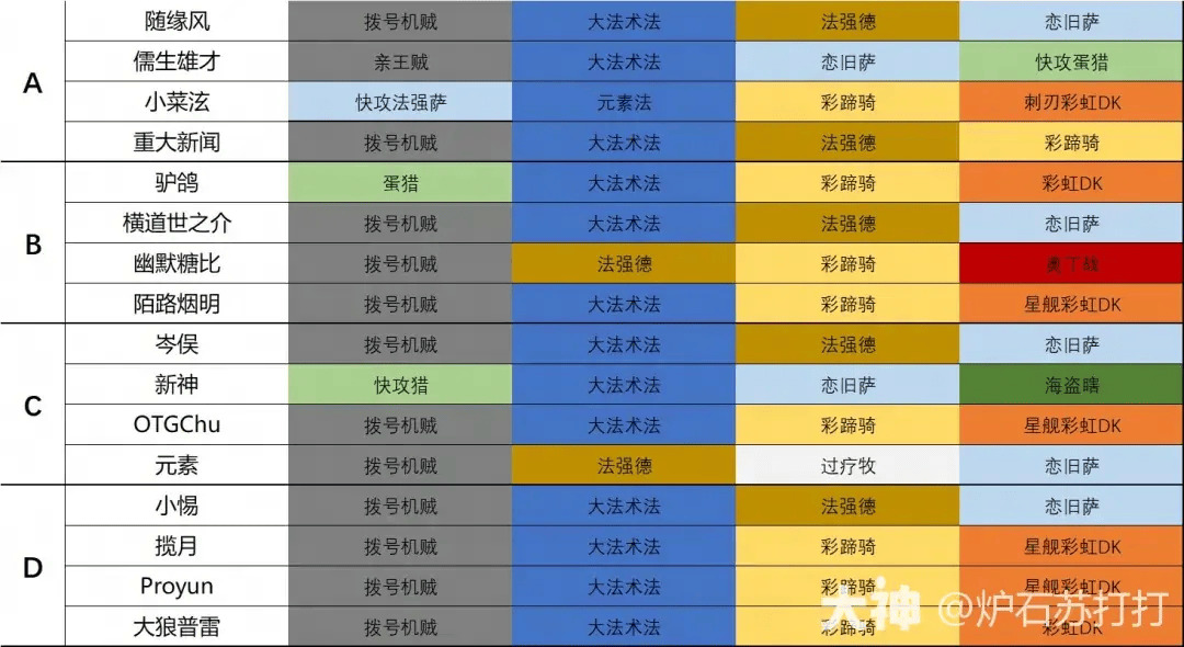 这种情况在2024年终总决赛国服预选赛的16名选手的卡组选择中表现得尤为明显。尽管法师职业被大多数选手携带,但只有一人选择了元素法,其他则清一色是大法术法。与此同时,恋旧萨、拨号机贼和彩蹄骑也占据了极高的出场率,充分证明这些“前朝之剑”仍然牢牢掌控着当前版本的核心竞争力。