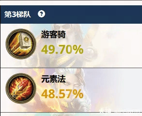 上图展示了元素法在国服传说前千分段的出场率和胜率,以及近三天的总体胜率。可以看出,版本首日元素法的出场率和胜率双双暴涨,但随着时间的推移迅速回落,近三天的胜率甚至已经跌破50%。尽管在中低分段中,元素法依然有一定的出场率,作为一套能够上传说的卡组,它仍有一定的实用价值。然而,从现有数据来看,元素法无疑成为了本版本最大的“版本陷阱”。可以预见,随着时间的推移,元素法的胜率和热度将进一步下滑,逐渐淡出竞争舞台。
