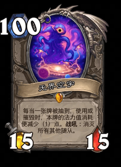 2、无界空宇:大幅加强各种控制卡组的后期能力,奥丁战、各种控制DK都可以带,减费效果不难触发。