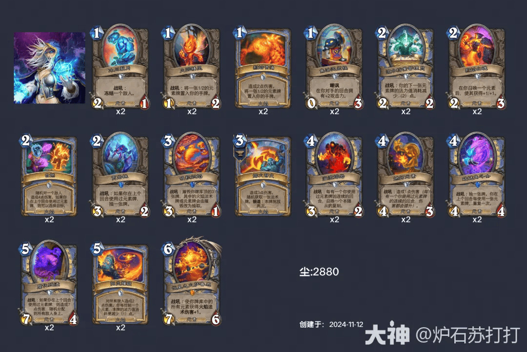 元素法在首日的爆火众所周知,但其迅速陨落的速度却让人始料未及。本版本中,元素法获得了诸多强化:如【吸积炽焰】提供的过牌能力和【恒星之火萨鲁恩】提升的法强,极**增强了卡组中后期的续航能力。然而,实际体验中,元素法对牌序的依赖性极高。前期需要依靠【烈焰亡魂】和【流水档案管理员】进行铺场;中期迫切需要【吸积炽焰】的过牌来稳定资源;后期则希望【恒星之火萨鲁恩】尽早到手,同时【溢流熔岩】必须在牌库中,才能最大限度发挥整套卡组的效果。