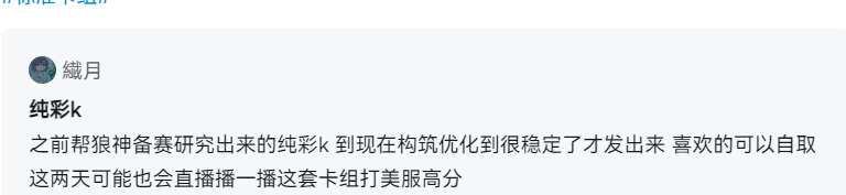 由于移动端的卡组讨论区没啥人力管理,乱打标签现象严重,故暂时停止经营,如果想更快看到高分卡组等等可以关注此营地账号,看时间随缘更新:
