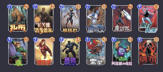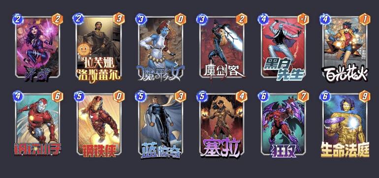 如果没有魔剑客,2回合打拉芙娜,3回合打灵蝶,4回合打塞拉,5回合打狂攻(和拉芙娜塞拉在同一区域),6回合还是可以打出钢铁侠(1费)+魔形女(1费)+生命法庭(4费)。