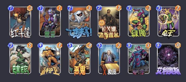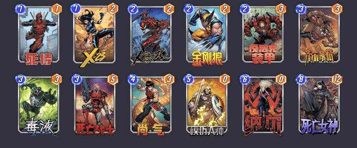 有了X-23的加入之后,删去卡组玩起来会更顺畅,最后一回合的7费可以打出纳尔加死侍或者模仿大师加死侍,有了更多的斩杀选择。这里带模仿大师是为了稳定复制自己高战力的牌,如果带的是阿尼姆佐拉(电视机),每次删去自己场上的卡牌随机性太大了,金刚狼和X-23被删去后所在的区域不可控,如果电视机需要摧毁的大哥和金刚狼或者X-23在一起,就有概率摧毁到他们,原本能赢的对局就输了,感觉前面都白忙了。所以为了提升卡组的稳定性,目前可以先带模仿大师,什么时候有妮可,什么时候替换掉就可以了。
