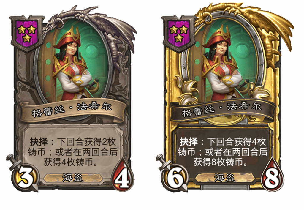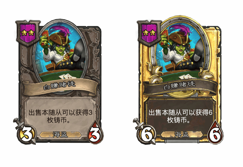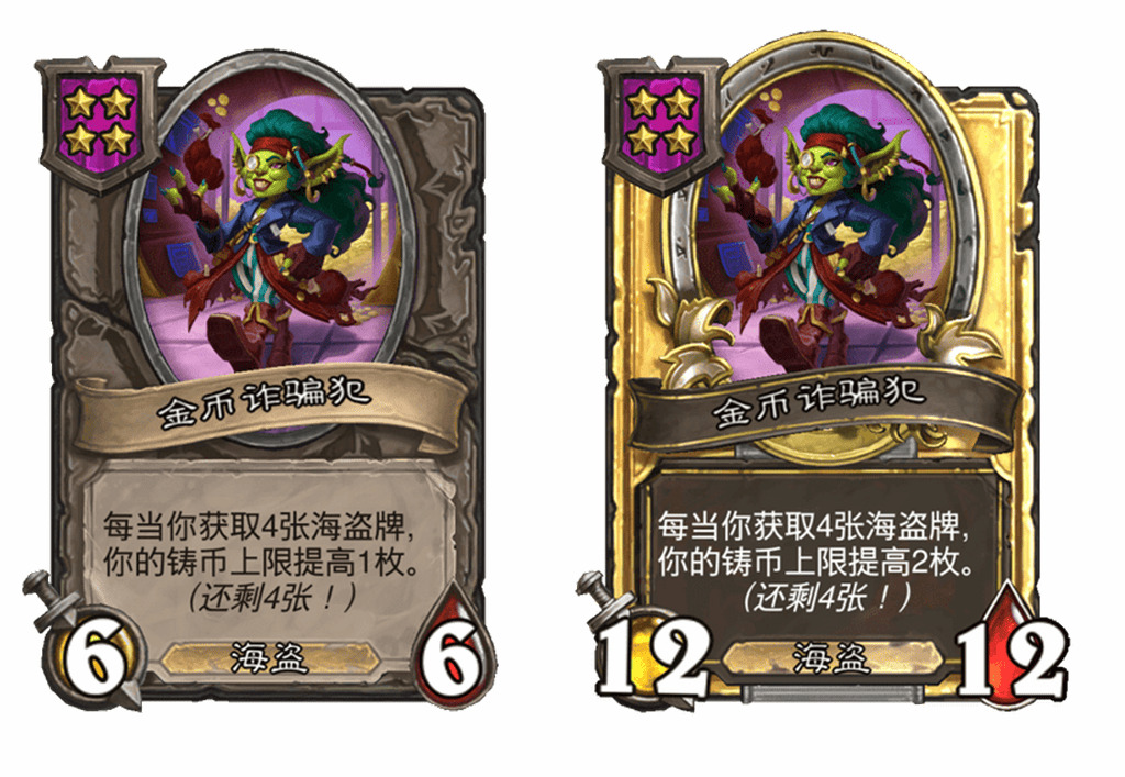 - 旧:[4星3/4] 战吼: 在本回合中,每花一枚铸币,使一个海盗获得+1生命值。