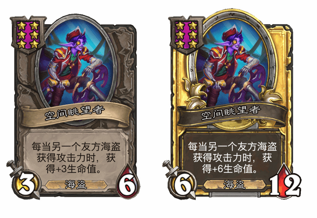 - [6星3/6海盗] 每当另一个友方海盗获得攻击力时,获得+3生命值。