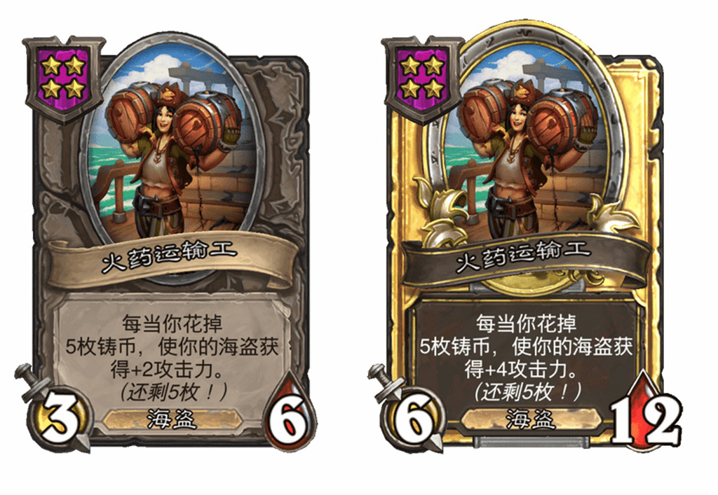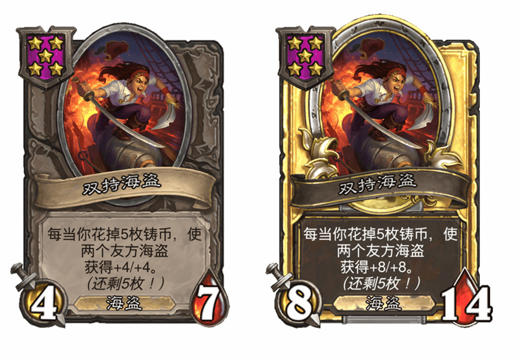 - 新:[4星3/6] 在你花掉5枚铸币后,使你的海盗获得+2攻击力。
