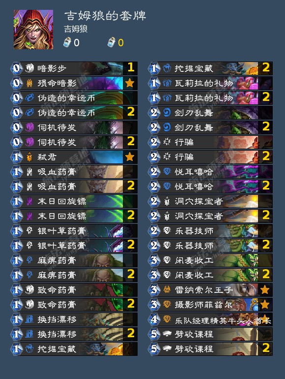 摄影师+暗影步,经典的无限康巴。可以获取无限的吸血药膏(虽然百分百的对局都用不上,要么被10+刀击败,要么后期卡组能从我们手牌处理掉摄影师,要么打快攻血量压力大把吸血用光了)