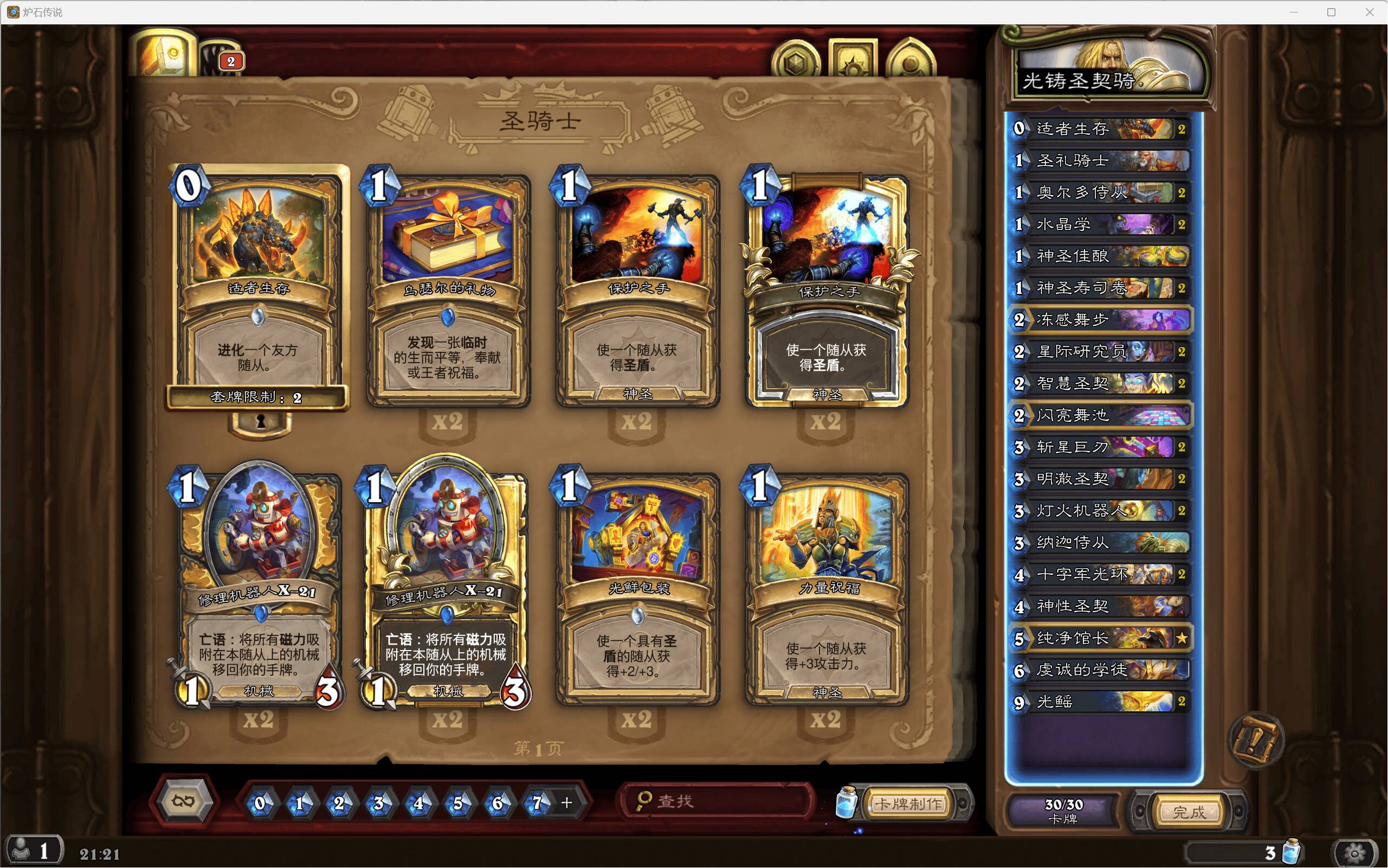 本贴呈现的卡组是一套30的光铸圣契骑,与40版本的船歌圣契骑相比,本套牌舍弃了otk,追求前期的爆发,称之为奇迹骑也不为过。