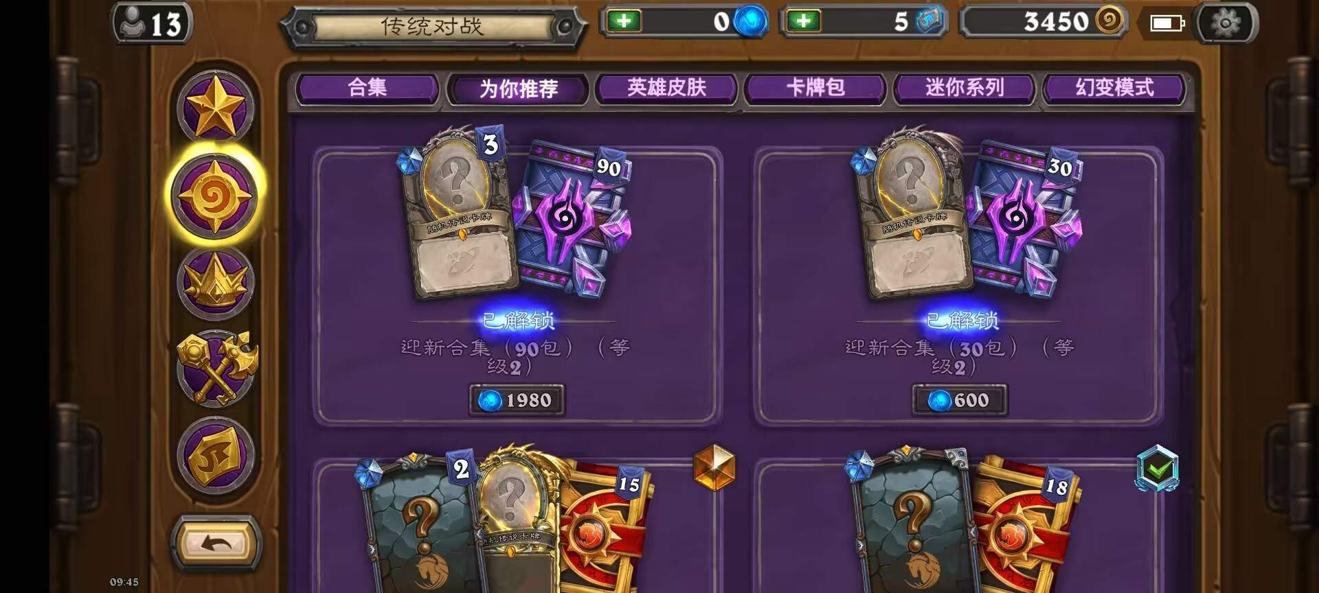 - 狂野牢玩家,如作者本人:购买异化传说包保底后购买所有拓展包的金包保底,全保底后继续购买巫妖王包,此处有一个小补丁要说一下,如果你金币多到我无法想象,可能会触发国服bug,即开到巫妖王迷你包版本卡触发1尘分解,但我觉得按照大多数玩家的金币持有量,在国服修好bug前应该都无法全收藏。