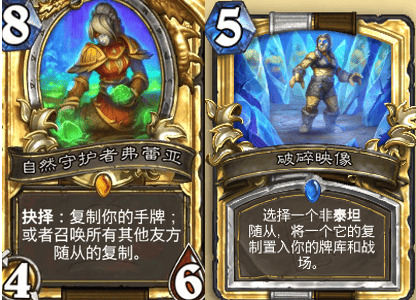 自然守护者+破碎映像。虽然费用足足高达13费,相当于整轮空过,但是首先两张卡都可以单独使用,而且德鲁伊费用高叠甲能力强,第一波补水对面都很难解掉。
