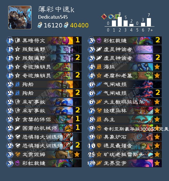 这套卡组就一个规划思路,如何凑够6费大主教超展开的尸体,包括适当点技能凑。忍住别乱开武器