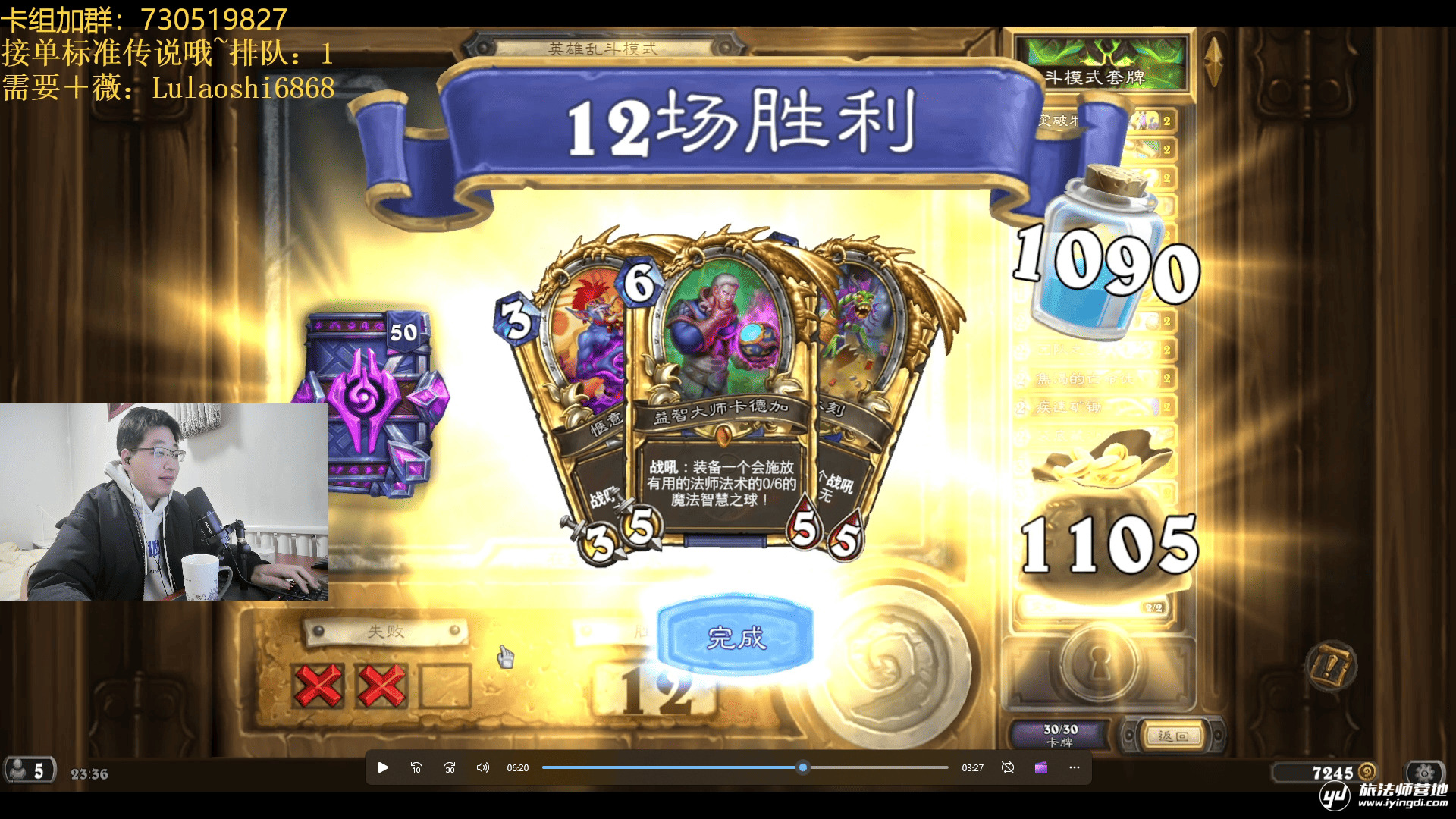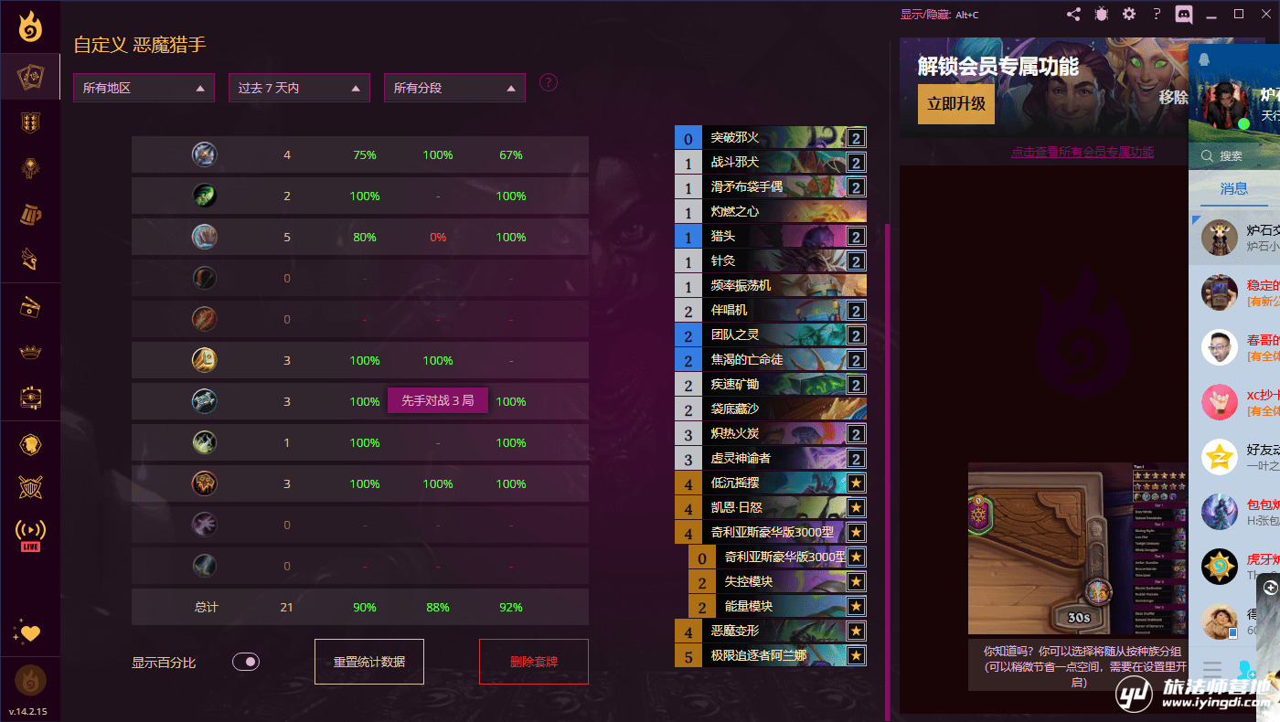 我先是用这套卡打了一个乱斗12胜,然后给2个钻3号上传分别各输一把,打出了20-2的战绩,非常暴力快速的一套卡组,高分段前百局也有很多人在玩,打圣骑士、萨满、DK是劣势对局,其他都很好打!前期留牌只要1费生物和2费过牌刀、团队之灵,反手有奇利亚斯可以留,先手不留,注意一些小康扒就行啦~大家有什么不懂的可以直接留言提问哦~