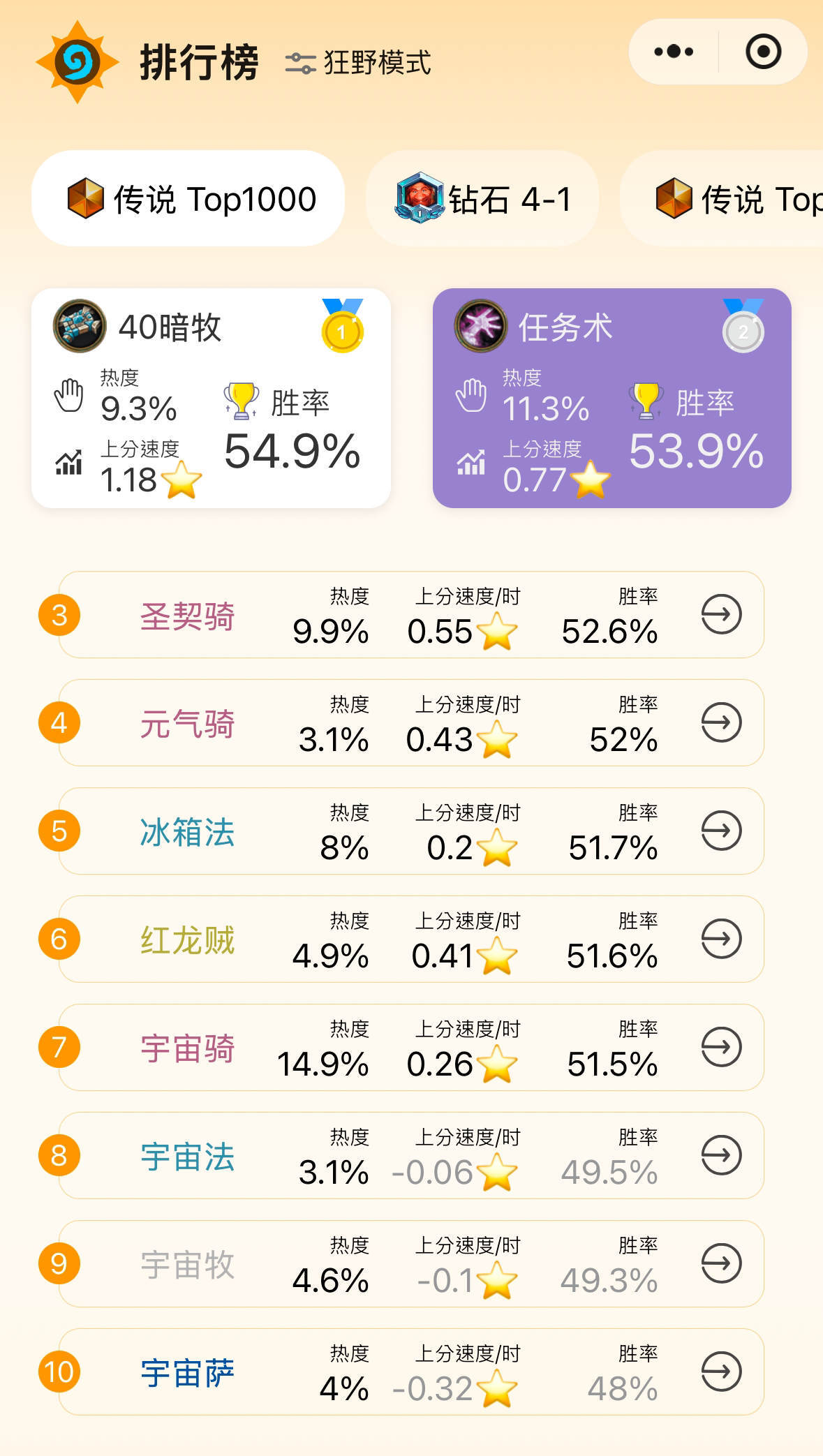驴子网 深暗領域 31.0.3 前一千分段 狂野各职业数据 (微信小程序HS卡牌大师):