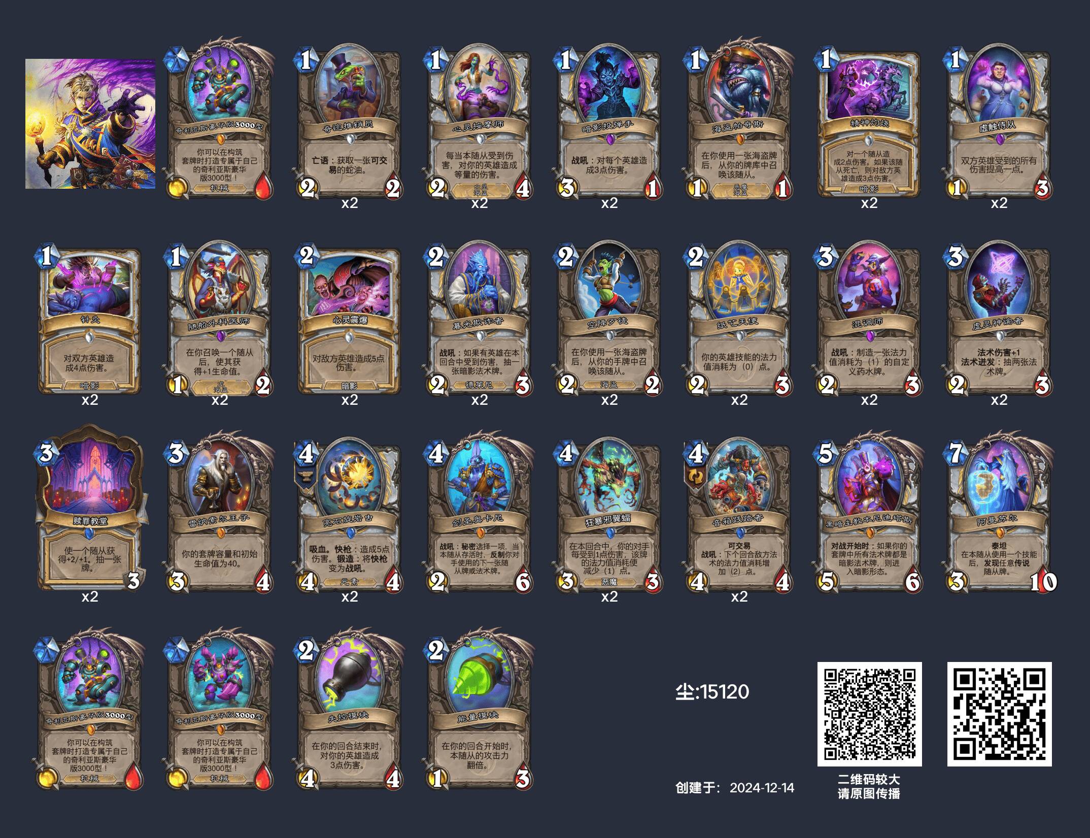驴子网 深暗領域 31.0.3 前一千分段 狂野卡组数据 (微信小程序HS卡牌大师):