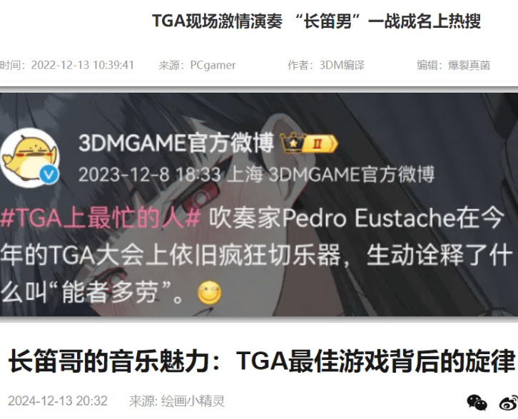 其实佩特罗早就出现在中国网民的视野中过,除了每年的TGA,他还为《王者荣耀》《原神》等多款游戏演奏过,演奏视频中也给了佩特罗特写镜头,这也让很多人看2024年TGA颁奖的时候觉得“这个大叔很眼熟”。