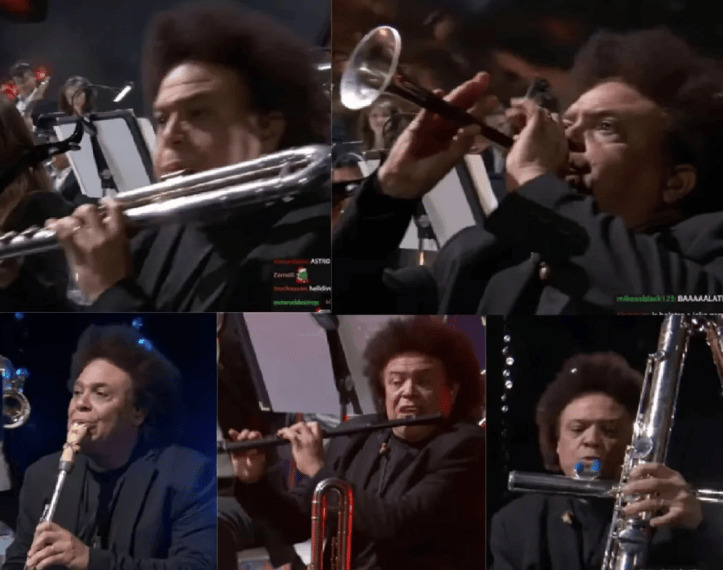 吹唢呐的大叔自然给人留下了深刻的印象,更惊人的是,在本次TGA上,光是给此人的特写镜头中,乐器就换过至少五件,东西方乐器都有。