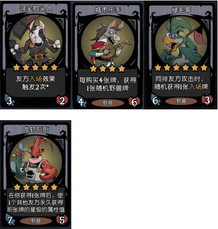 通过连续不断的购买卡牌,从而触发龙虾,给随机随从加身材,但是这就需要我们有倒转的前提,龙虾类似的可以替换成为大树、琴师等。狗头+野兽是组件最少的倒转,类似的可以替换成侦探、黑夜国王等,但是这样的搭配玩龙虾就有点亏了!