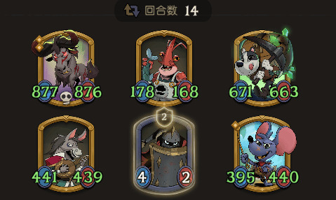 不得不说,野兽的经济牌还是多,但是在经济多的情况下,战力同时与之就明显的会低。而且前排的绿毛、扑克都是自带嘲讽的牌......