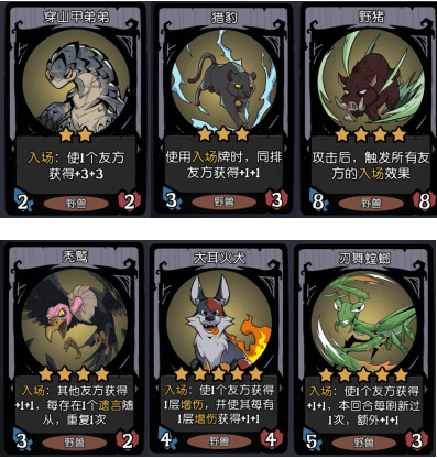 秃鹫、火犬、螳螂:优质的入场buff牌。