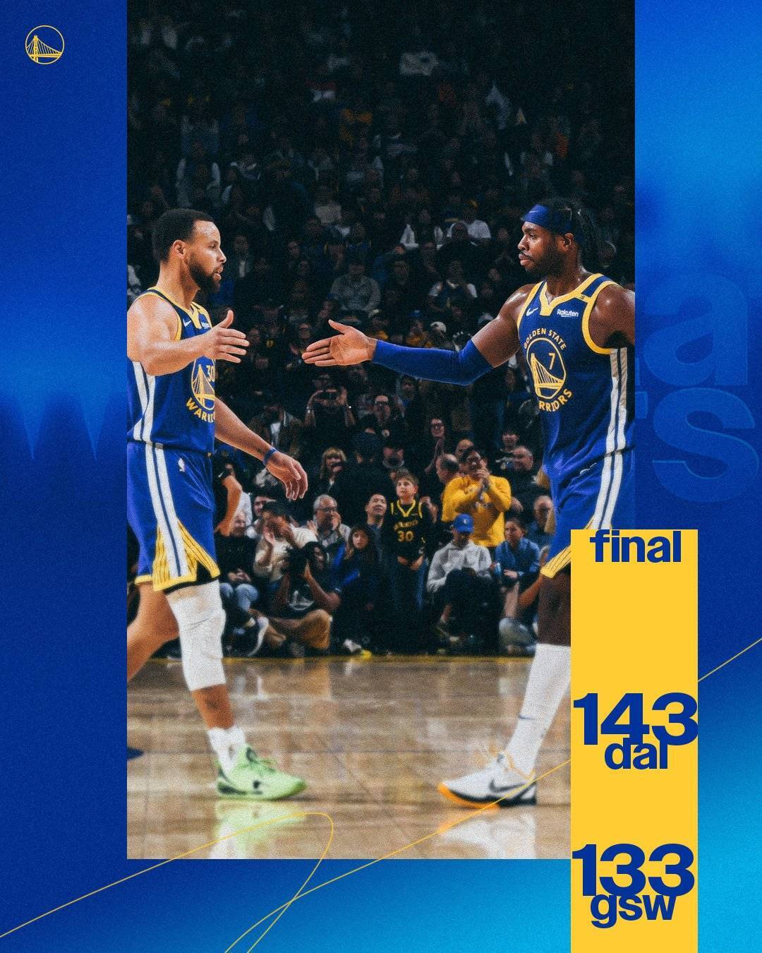 达拉斯独行侠客场143-133胜金州勇士
