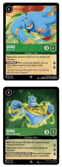 出自1992年电影《阿拉丁》,由于灯神本来就有魔法可以变化成各种样子,这三张不同源型的灯神看不太出来有什么明显的特点...
