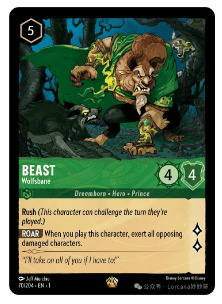 出自1991年电影《美女与野兽》,野兽与狼群搏斗是动画中的桥段,不过这里的角色类别是幻梦源型,可能想表达的是这里的野兽把狼群击败了,并没有像电影中一样受伤(毕竟是Wolfsbane)。