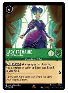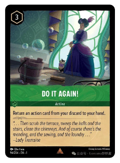 出自1950年电影《仙履奇缘》,灰姑娘大名鼎鼎的坏后妈,大家都知道。拿一张行动牌回手,倒是很适合“再做一遍”的命令,不过要是能针对对手就更贴切了。