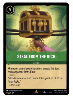 出自1973年电影《罗宾汉》,中有《水浒传》西有《罗宾汉》,拥有一位劫富济贫的侠盗一直是底层人民的朴实愿望。印象中电影里并没有像这样划开宝箱底部的桥段,但有类似的抢劫马车。