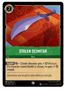 出自1992年电影《阿拉丁》,印象中阿拉丁确实抢了把弯刀挥了两下,不过他的小猴子朋友阿布也拿过弯刀,为什么不给阿布加攻呢?