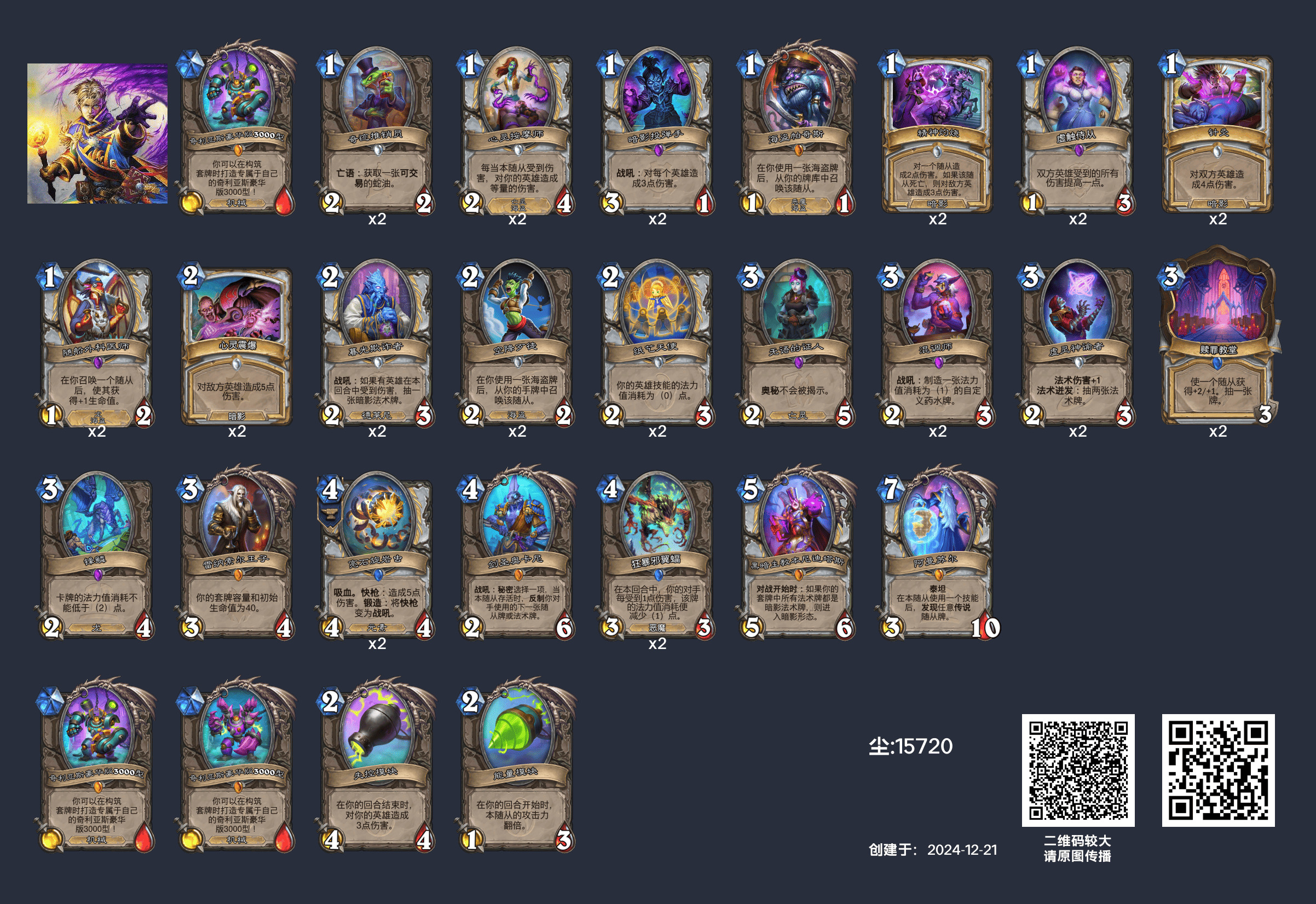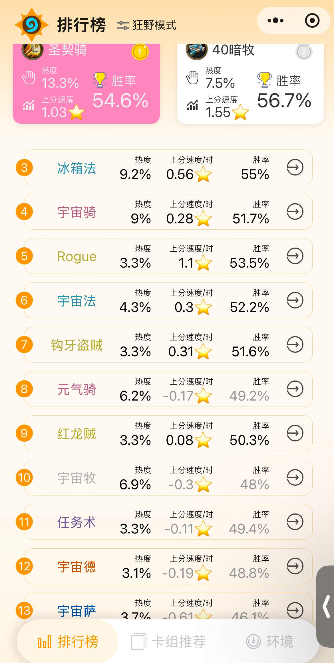 驴子网 深暗領域 31.2.2 前一千分段 狂野卡组数据 (微信小程序HS卡牌大师):