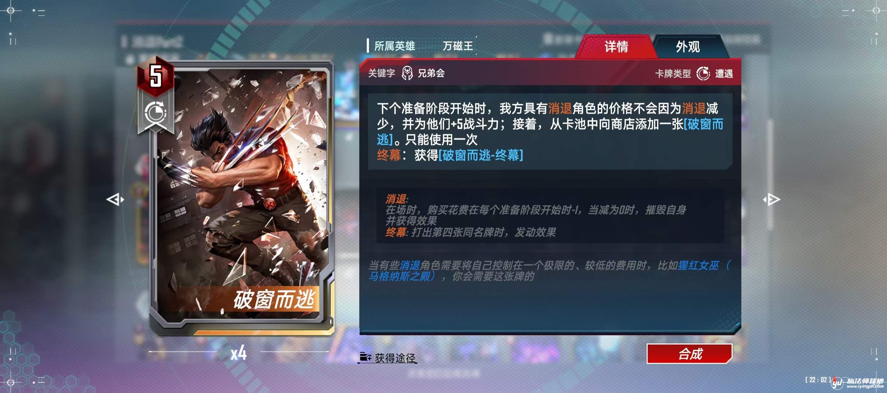 4、5-7、8回合,加速组成消退组合(惊妹 + 2+1母雷 +女巫)因为消退的特色,每一个回合都在给你的卡牌减费,如果减到1且没有找到破窗而逃的话,下回合他们会给你say goodbye的。所以需要关注好局内单卡的价格,及时找好破窗而逃锁定单卡,一般情况下,一回合使用一张即可,下回合会商店里会再送一张给你,达到费用一直锁定。