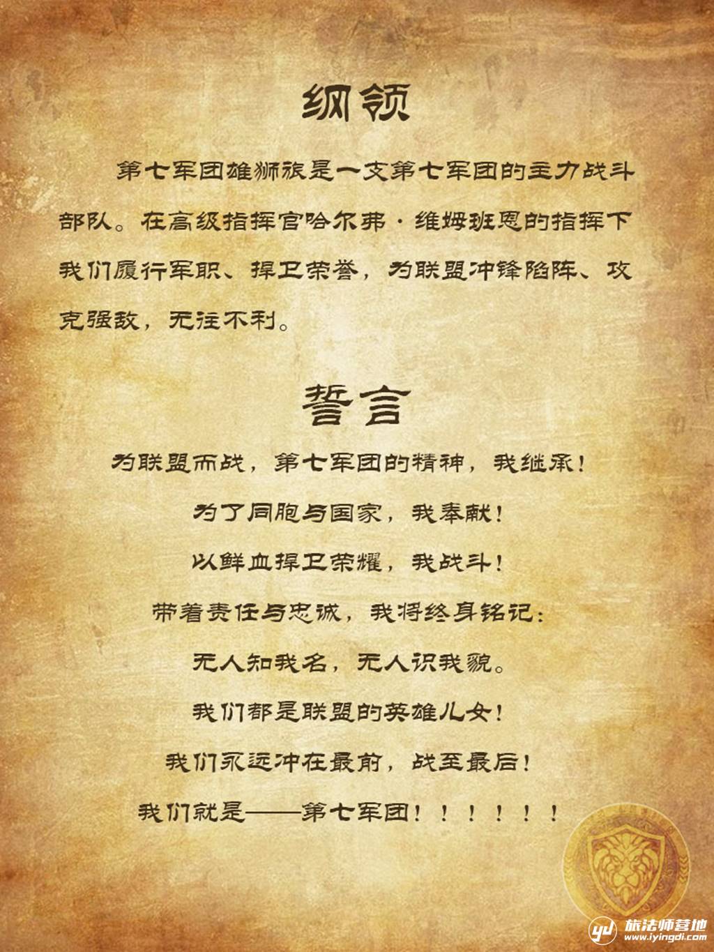 该贴用于第七军团雄狮旅的留档,宣传及招募。