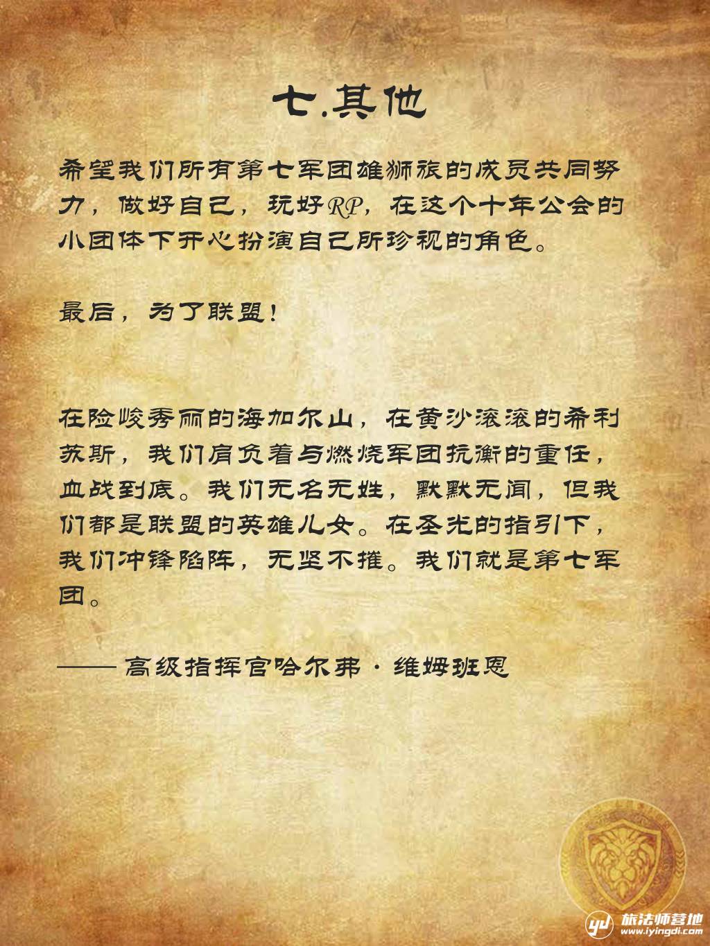 【公会卡】第七军团雄狮旅公会RP手册3.0