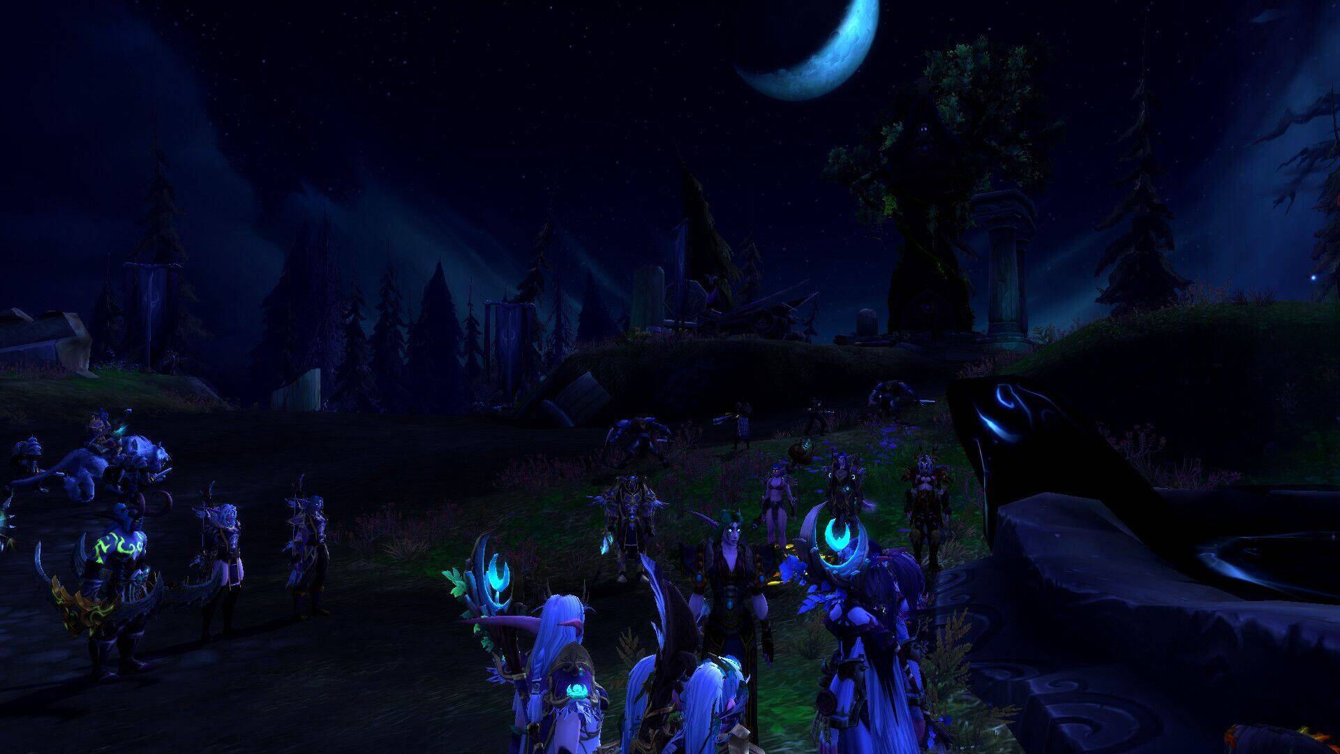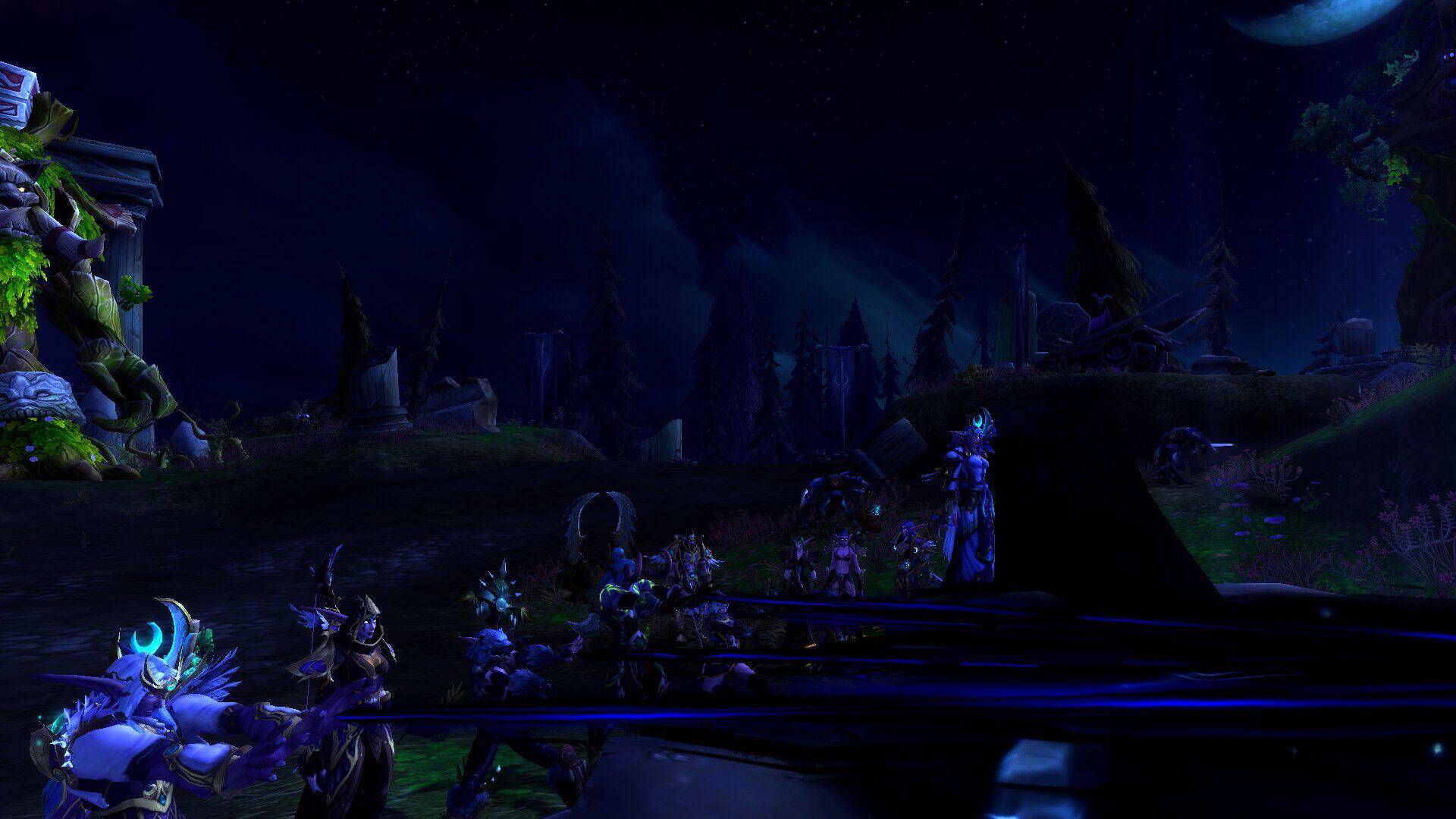 皎月哨兵与语风德鲁伊集结在芭莎艾兰黑月之下,