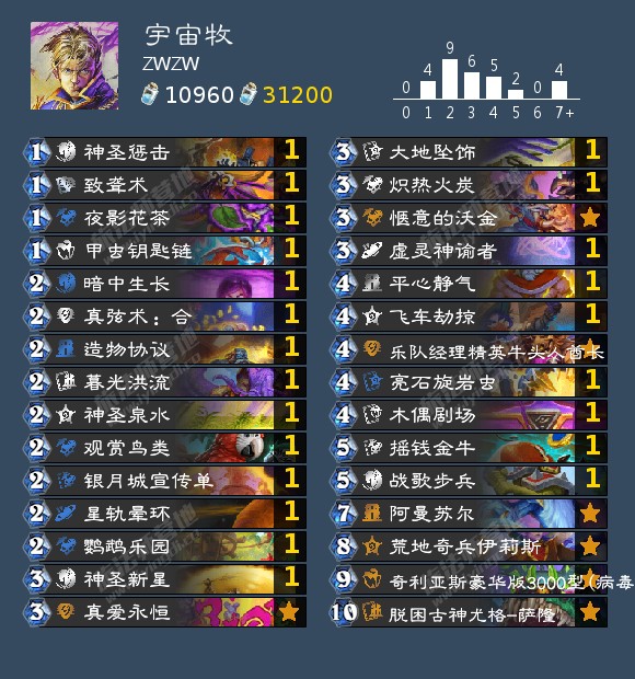 后期质量牌几乎全靠锻刀,优先选风怒叠甲、需要场面就风怒召8,不太需要其他的冗余质量牌增加卡手率。