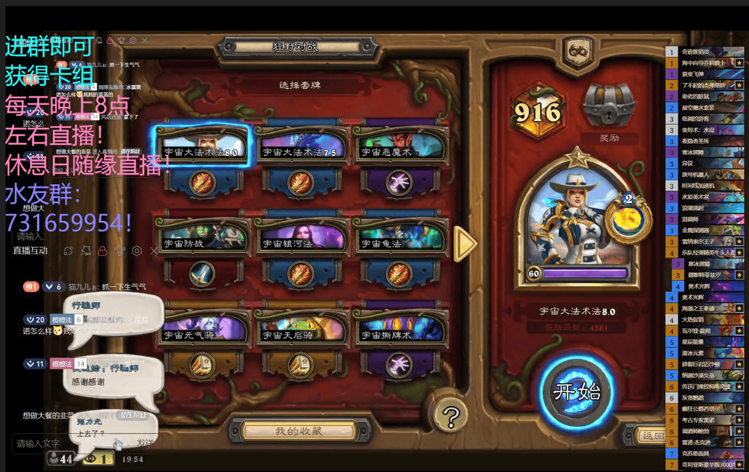 如果大家喜欢常规宇宙法可以玩一下这套卡组,刚组的时候直播玩加上在B站发视频,吸引了一部分小伙伴加上他们的推广让天梯有了这一种形态也太让人开心的,我会把对战的思路,选卡,卡牌替换,细节以及部分机制向大家阐述清楚!
