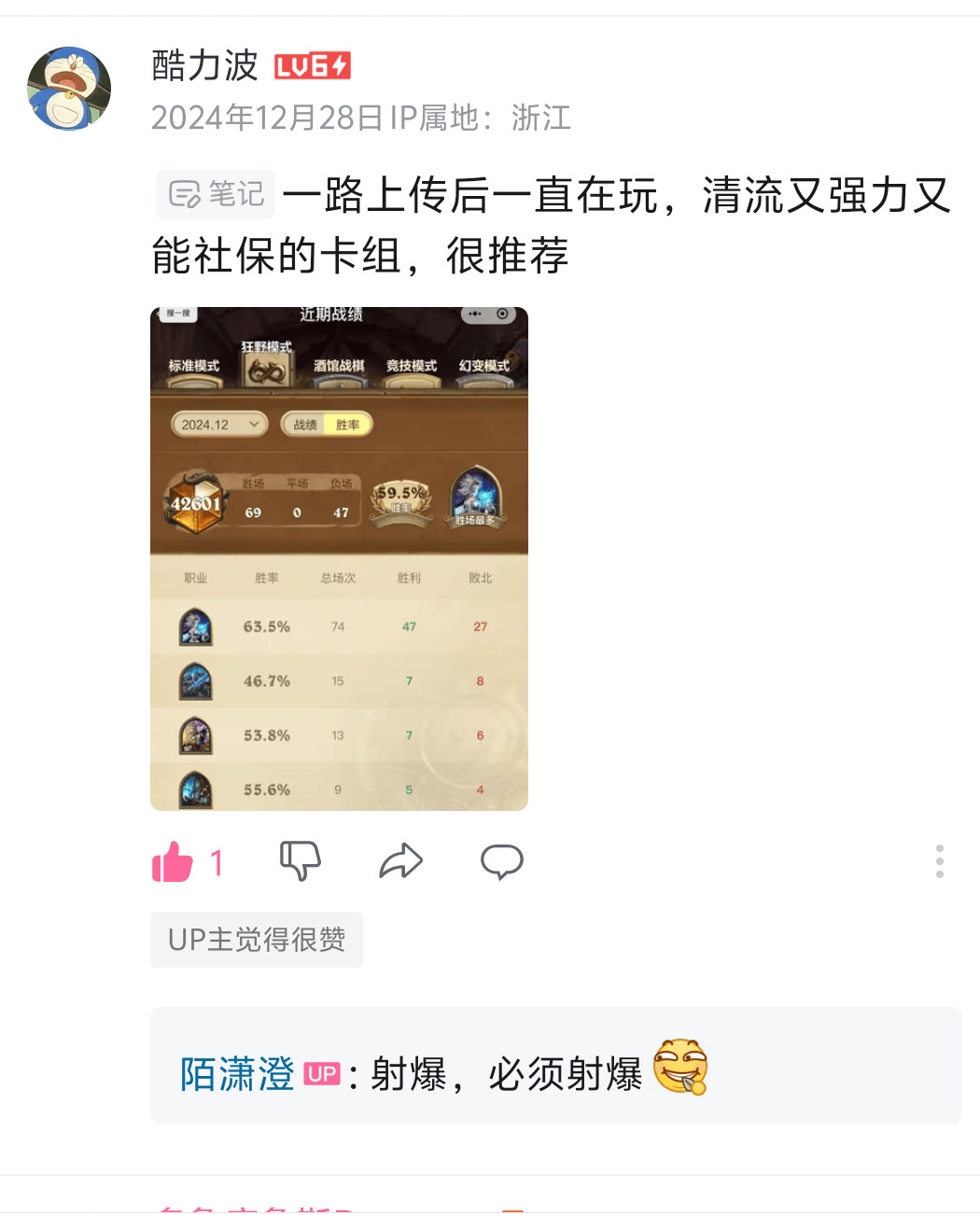 卡组需要理解和实战,把握环境多数卡组进行微调可以更好上分,我也不喜欢争辩,我放数据,放水友交的作业,大家可以看看哈,有什么不懂可以加群或者B站询问或者看思路视频。