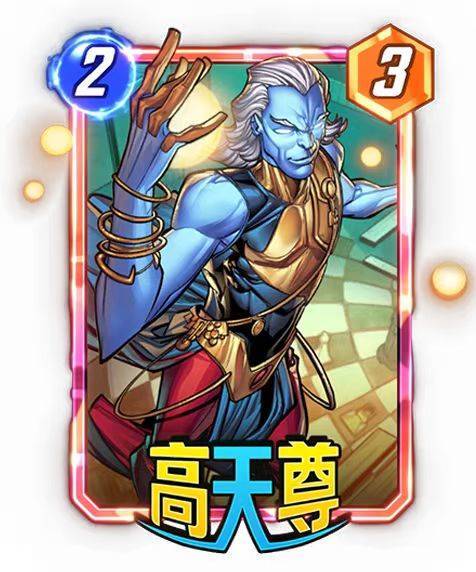 首次登场国际服的高天尊是2费0战力,由此可见当时的设计师认为这张卡完全可以凭借自身的效果弥补他缺少的2费标准的3点战力。但事实是,刚登场的他并没有掀起太大的浪花,或许是因为他需要先将一张卡移动到中间区域,之后才能触发他的效果,又或是打出这张卡时要注意他只能触发区域内另外一张卡的揭示效果。这些限制或多或少的影响了他在一众卡组中找到属于自己的位置。